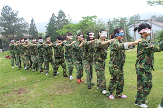圖為第二批部分學員正在完成“盲陣”項目