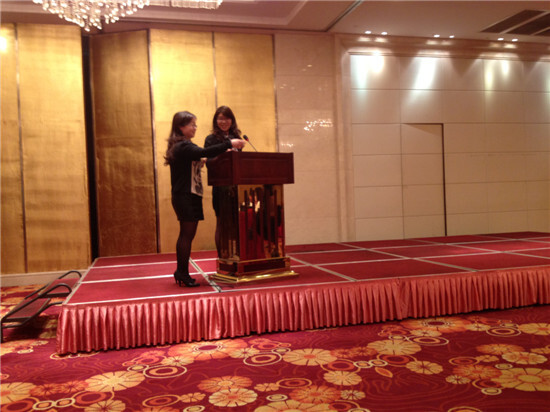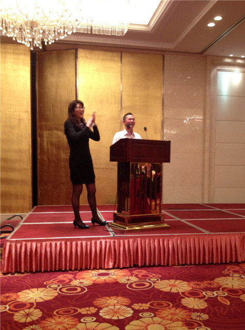 王總上臺講話,她祝福所有女同仁永遠健康美麗、幸福快樂