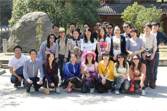下午一點多,大家酒足飯飽,盡興而歸。圖為在五龍潭景區的出口處合影留念