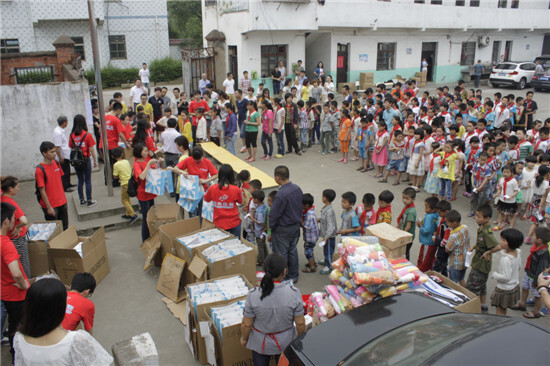 當天天氣異常悶熱,但絲毫沒有減少志愿者們的熱情。上午9:10分愛心捐贈活動正式開始,大家積極有序地給小朋友們分發(fā)物資。當天和我們一同前往的還有義烏市弘寶行、義烏市新生代協(xié)會、義烏藍俊志愿者協(xié)會等志愿者。