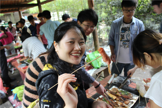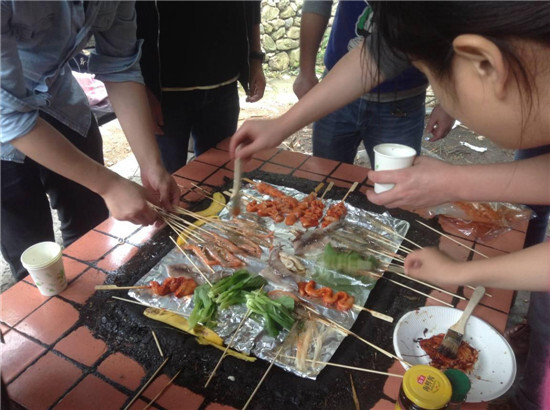 燒烤的香味開始彌漫四周,一群吃貨一擁而上,青山綠水,舌尖上的美味。