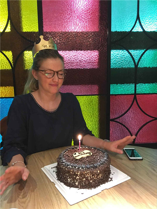 9月22日,工作之余,綠時業(yè)務(wù)三部的周君、賈慧等給來訪的意大利M客人Beatrice過了一個開心愉悅的25歲生日。主人公許愿,大家齊唱生日歌,歡笑滿場。工作上,我們做到了嚴(yán)謹(jǐn)細(xì)致的服務(wù),生活中也對客戶處處關(guān)心,加深了同客戶的親密聯(lián)系,提升了客戶對我們的信任感,更好地服務(wù)了客戶。祝愿客戶在異國他鄉(xiāng)有一個難忘的回憶。