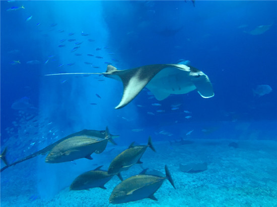接下來(lái)幾天,我們穿過(guò)通往天堂的古宇利大橋,沿途的“七色海”閃爍著藍(lán)寶石光芒,輕輕環(huán)抱著海島,細(xì)軟綿長(zhǎng)的白沙灘和色彩漸變的海水,讓人遐想萬(wàn)千。還有水族館看鯊魚(yú)、沙灘邊上看海豚秀、古色古香的首里城公園等等,最終優(yōu)景家人的笑容,定格在一片郁郁蔥蔥的樹(shù)群中,留下了珍貴的合影。