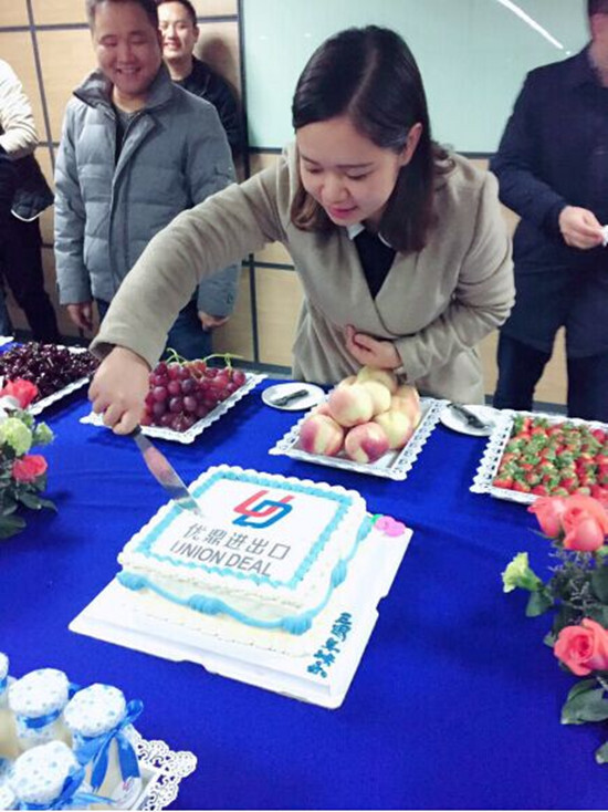 11月28日,是優(yōu)鼎進(jìn)出口成立三周年的日子。每年這個(gè)時(shí)候,正值優(yōu)鼎出貨期,許多同事都在倉(cāng)庫(kù)忙碌,在工廠驗(yàn)貨出貨,所以以往幾年都是簡(jiǎn)單慶祝,今年則有點(diǎn)特別,給了所有同事一個(gè)大大驚喜。
