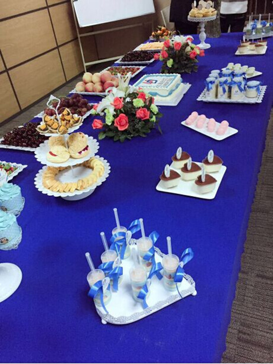 28日晚臨近下班,蛋糕店的老板娘送來(lái)了生日蛋糕,各式種類的糕點(diǎn),還有美味的水果,車?yán)遄印⒉葺⒚酃系取M瑫r(shí)蛋糕店的工作人員還美美地布置了我們的會(huì)議室,各式各樣的美食擺放得像一件件藝術(shù)品,看得大家目瞪口呆。吹蠟燭前,錢總、書記(優(yōu)鼎總經(jīng)理王建)先后發(fā)表了講話,鼓勵(lì)大家繼續(xù)努力,雖然今年業(yè)績(jī)較之以往稍有下降,但是在新客人開發(fā)模塊勢(shì)頭很好,相信明年會(huì)更好,有時(shí)適當(dāng)?shù)哪婢常軒?lái)不一樣的結(jié)果。慶祝會(huì)上,大家開心地享用美食、玩游戲,讓我們共同祝愿優(yōu)鼎三周歲生日快樂(lè)。