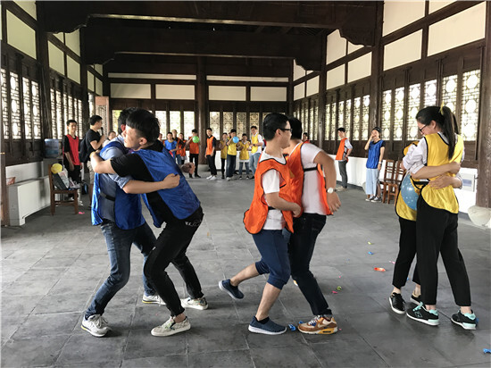 中午稍作休息之后,我們開始了今天的重頭戲,團建小游戲。首先是雙人運氣球,即是比拼速度也是考驗策略。有的團隊為了求快,氣球吹得太小,反而花了很長時間爆破氣球。另一個游戲是氣球不落地,大家紛紛展示出各種姿勢,在吹落敵方氣球的時候又及時挽救自己的氣球,虞浩君的一個鯉魚打挺贏得了陣陣掌聲。最后一個環節,也是最考驗團隊協作的一個游戲-齊心協力站起來。8位隊員坐在地上,要靠隊員之間的借力,不用手撐地而站起來。在10多分鐘的練習之后,幾組團隊漸漸掌握了訣竅,不斷突破,從8秒到3秒,挑戰的時間越來越短,成功率越來越高。相信這也是大家在工作中不斷創新,不斷進步的縮影。