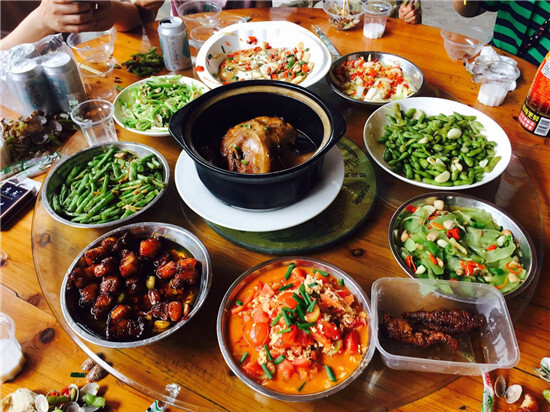 食材準備完成后,就要開始生火做飯了,大家各自做自己的拿手菜,兩個大菜紅燒肉和小龍蝦則是等著我們丁隊了。小伙伴都在一旁圍觀丁隊做紅燒肉,學習討教紅燒肉的做法。肉一上桌,大家就開始吃起來了,味道一點也不亞于飯店。最后上桌的是一大盤香辣可口的小龍蝦了,不,應該是一盆!上龍蝦時大家看似平靜,內心早已風起云涌。酒足飯飽后,大家收拾好東西,盡興而歸。