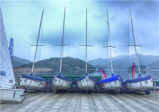 玩帆船和皮劃艇的地點就在九龍湖里,揚帆游湖真的是別有一番滋味,和徒步欣賞九龍湖美景又是不一樣的體驗。帆船項目由教練全程指導,看教練輕輕松松,等我們自己上手果然會慌張,不過第一次開船并沒有翻船,哈哈哈,教練直夸我們有悟性。