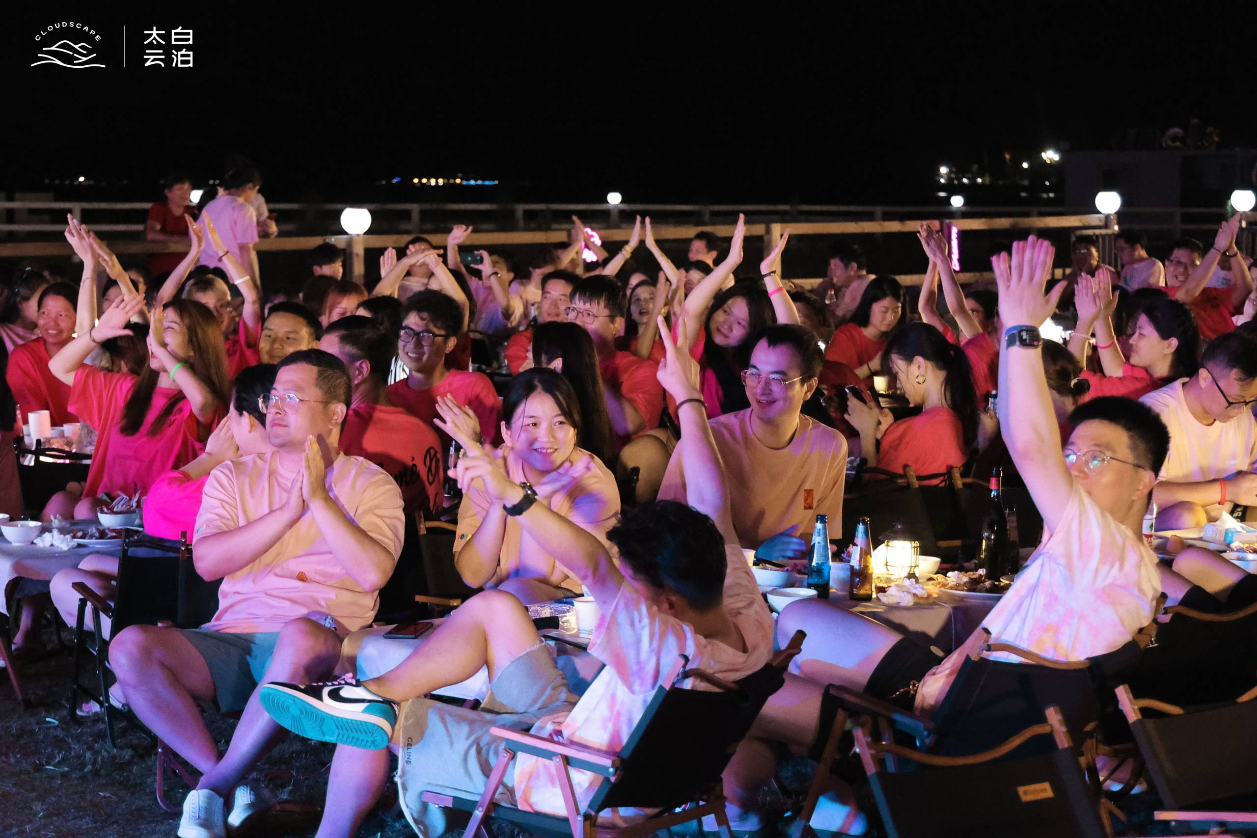 游戲環節結束后,大家洗去身上的疲憊,共同享用晚餐,愜意地進入了“無粉不起浪”音樂晚會。伴隨著夜色的降臨,音樂會在特邀嘉賓的表演下正式開始,一幕幕精彩的表演在舞臺上展開,無論是激情四溢的說唱,還是溫柔動人的民謠,每一首歌都如同羈絆將所有人緊密相連。臺下的歡笑與臺上的歌聲交織在一起,讓我們打破了工作的束縛,也洗去了下午的疲憊。