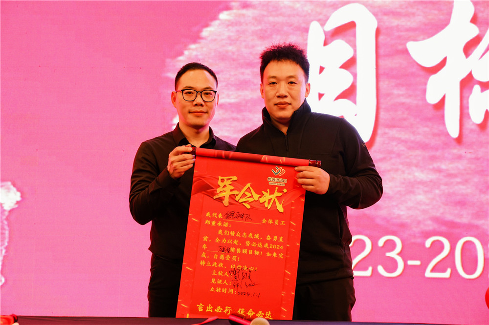 懲罰結束,各部門領導作為代表簽署了新的軍令狀,邵總作為見證人,和大家一起在軍令狀上留下了對新一年的期待。因為這不僅是優遠公司一場新的奔赴,也是我們每一位員工的新征程。隨后,全體員工也在主持人的帶領下,一起宣讀了廉潔自律的承諾書,我們將始終維護廉潔的紅線。