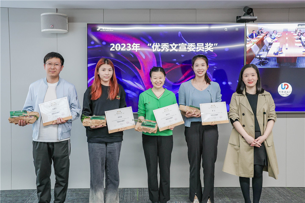 會議首先對2023年全體文宣委員們發放履職紀念品,并表彰5位優秀文宣委員,為他們頒發榮譽獎牌和禮品,感謝他們過去一年在公司和職能部門內部持續進行企業文化的宣傳發動和組織引導,為集團企業文化發展和建設工作中做出了卓有成效的貢獻。