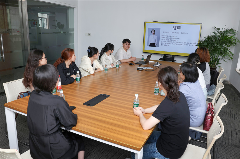 近期,集團多所合作高校校企開放日活動如期而至。6月19日和6月21日,南昌工程學院和浙江財經大學2025屆優秀應屆生同學和老師參訪義烏運營中心。走進一樓大廳,同學們就被公司的文化展廳吸引,人資部招聘組HR小伙伴為大家一一介紹了集團發展歷程、經營機制、人才培養體系、公司文化及各類興趣社團、公益活動等。文化墻上,集團的全球市場圖和與各國客人的交談合影照片令人眼前一亮,老師和同學們紛紛詢問了解外貿拓客的方式、對語言能力的要求等,對外貿表現出了極大興趣。