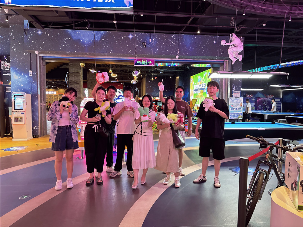 聚餐之后,大家展開了另一項有趣的活動——抓娃娃。抓娃娃看似簡單,但實際上需要技巧與耐心,更重要的是團隊成員之間的合作與默契。在其他成員的建議與鼓勵下,每個人都輪流上陣,努力抓取心儀的娃娃。在這個過程中,大家積極出謀劃策,互相鼓勵,不論成敗,樂在其中。
