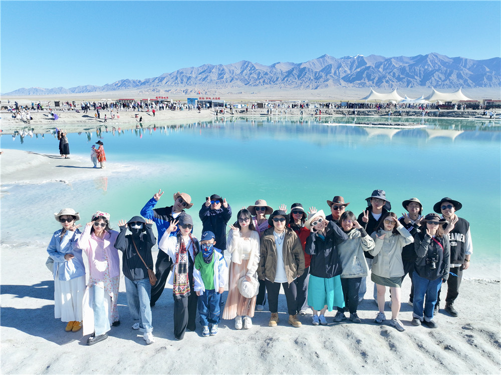 第三站是翡翠湖,為了更好地記錄這個美好的時刻,團隊特意安排了航拍,大家聚在一起對著鏡頭比耶。在清澈瑰麗的翡翠湖邊,充斥著我們的歡聲笑語。在鏡頭中,我們感受到了生活的平靜與放松。隨后,大家兩人組隊,開啟了越野摩托之行。伴隨著清涼的微風,沿途美麗的風景給每一個人都帶來了更多新鮮有趣的美好回憶。隨后,我們又經過了夢幻透亮的察爾汗鹽湖。在這里,大家紛紛開啟了合照模式,隨手一拍都是大片。