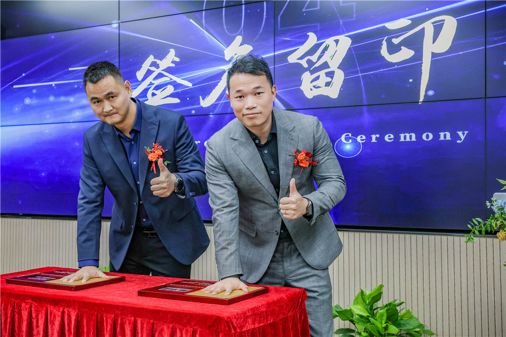徐平炬董事長為優(yōu)琥和優(yōu)貫事業(yè)部負(fù)責(zé)人頒發(fā)聘書,責(zé)任與期望并肩。