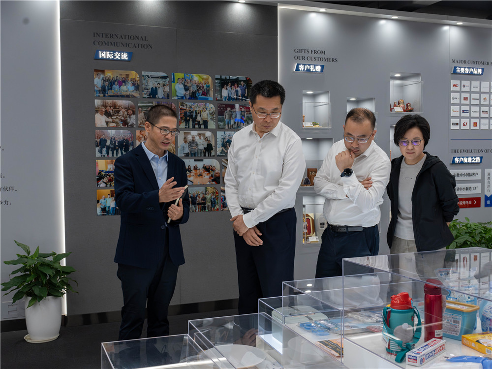 在集團文化展廳,盧山副省長全面了解集團的發展歷程、業務版塊和管理模式,特別是在合伙人機制和共生型組織建設方面的特色做法,對賽爾的管理運營模式以及取得的成果表示肯定。徐平炬董事長重點介紹了集團在當前美國關稅政策影響下的業務經營情況和的應對舉措。盧副省長表示政府將加大政策扶持力度,幫助企業應對當前復雜的國際貿易形勢,推進高質量發展。