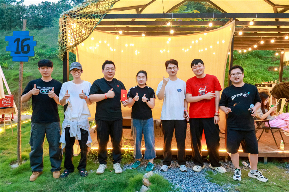 迎接我們的首先是清新的自然空氣和美麗的山水景色。午餐時間,大家圍坐在一起,共同享受了精心準備的燒菜和烤全羊盛宴。下午,大家參與了充滿挑戰和趣味的團體活動闖關。各組成員在活動中通過分工合作、互相配合,發揮出各自的特長,成功完成了多個任務。在團建晚餐剛剛開始的時候,現場突然燈光一暗,音樂響起,生日蛋糕緩緩端上來。伴隨著同事們的掌聲和生日歌,壽星臉上露出了驚喜又感動的笑容。晚餐后,有的成員選擇了與朋友高歌一曲,盡情釋放壓力;有的成員則聚在一起玩起了桌游,在輕松愉快的氛圍中加深了彼此的了解。