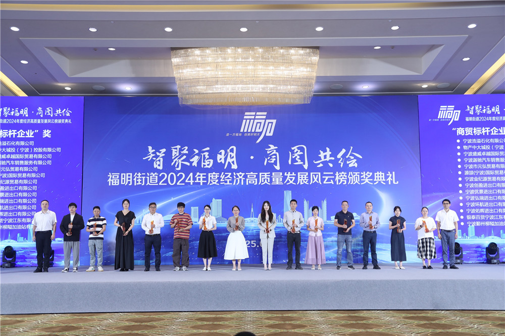 2025年5月30日,“智聚福明·商圖共繪”——福明街道2024年度經濟高質量發展風云榜頒獎典禮隆重舉行。鄞州區科技局局長、黨組書記虞文平,鄞州區委組織部副部長、區委人才辦常務副主任任甘、鄞州區福明街道黨工委書記劉剛等領導出席典禮。