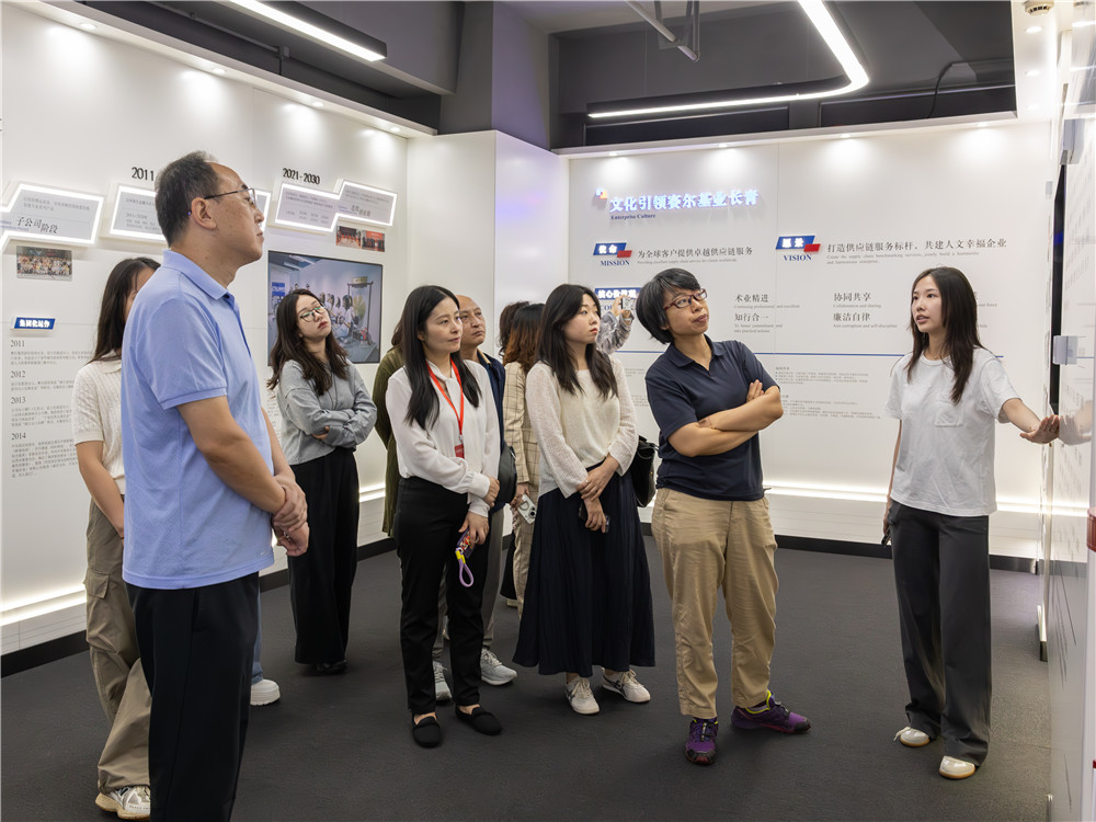老師們首先沉浸式體驗了集團(tuán)文化展廳,隨后舉行產(chǎn)教融合座談會。雙方展開研討,集團(tuán)副總裁方永強(qiáng)和優(yōu)遠(yuǎn)公司副經(jīng)理曾學(xué)俊分別站在集團(tuán)招聘角度和實際工作角度,回復(fù)了各校老師圍繞"跨境電商行業(yè)"和"校企合作"提出的疑問,收獲頗豐,為后續(xù)課程建設(shè)與合作開拓了新思路。