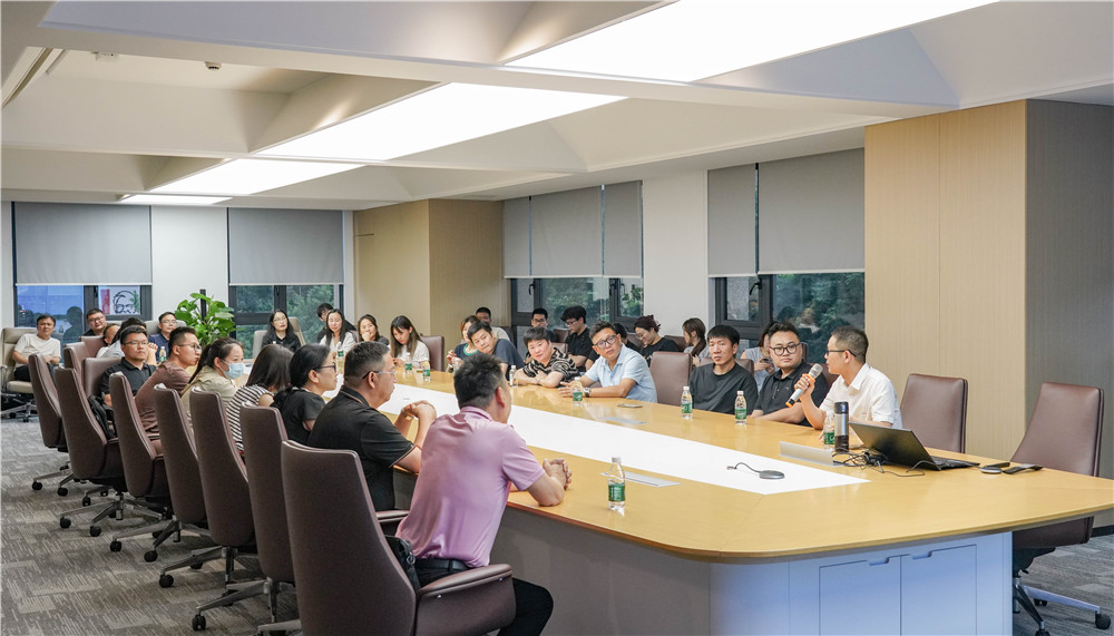 參觀結束后,吳金財經理就集團在跨境電商供應鏈體系建設和數字化服務方面的優勢進行了簡要介紹。與往屆活動不同,本次交流會特別延長了自由對接環節,為企業提供了更充分的溝通機會,現場氣氛熱烈,成果顯著。來自集團優越東吳、綠時、倍優、優遠等多家公司的業務骨干們與企業代表們自發形成多個討論小組,圍繞近期熱點話題展開深入交流。