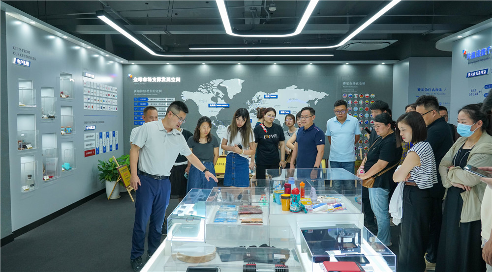 參訪團一行首先參觀了企業文化展廳和產品展示中心。孟祥龍總經理詳細介紹了集團的發展歷程、業務生態,直觀展示了各類產品的工藝細節與創新設計。