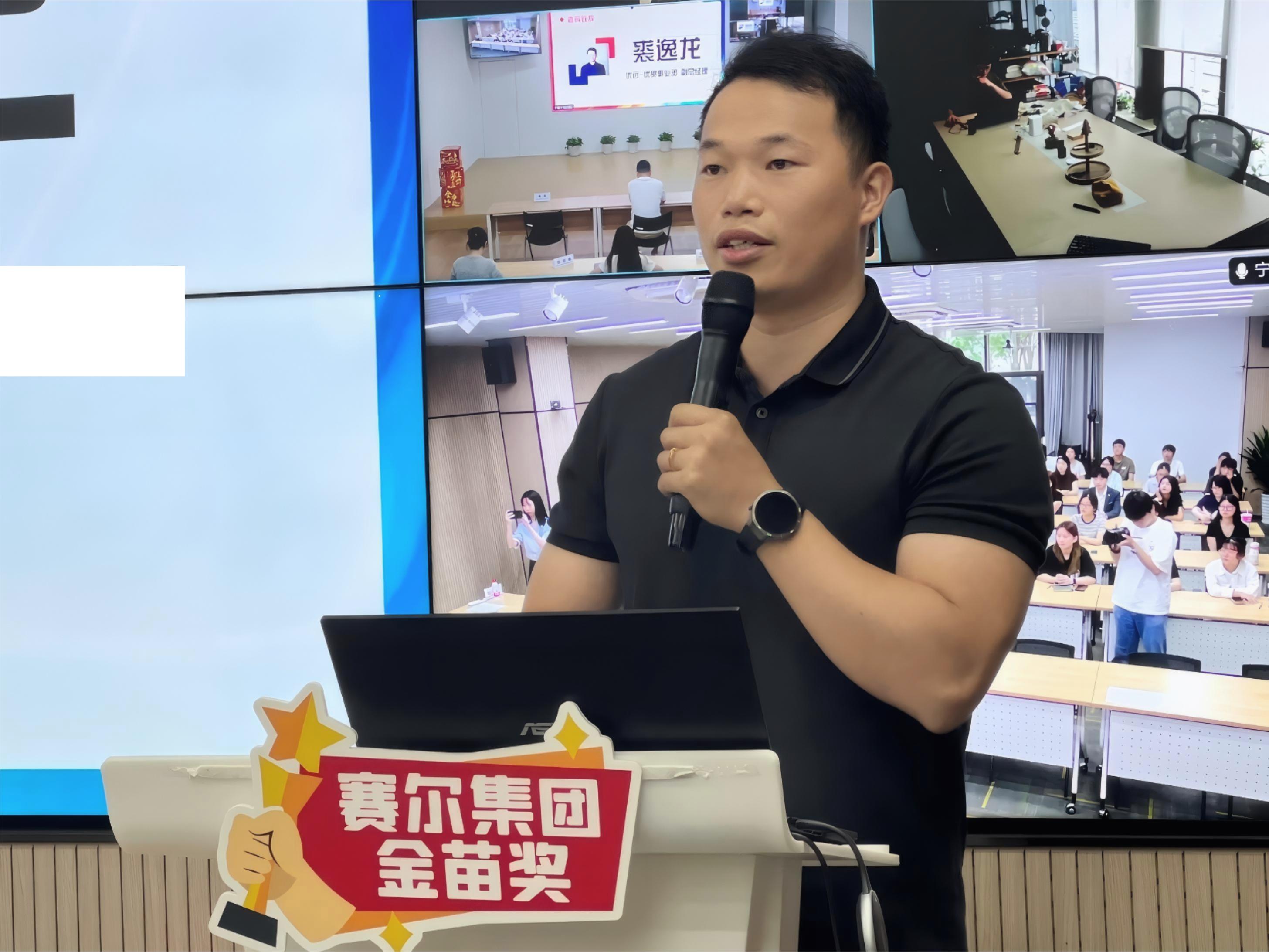 裘逸龍副總經理在致辭中,向所有獲獎實習生致以最熱烈的祝賀,充分肯定了他們在實習期間的辛勤付出與顯著成長。裘總結合個人成長與職業發展經歷,勉勵獲獎者們銳意進取,勇于嘗試,在賽爾平臺上創造更大價值,為集團發展注入新動力。