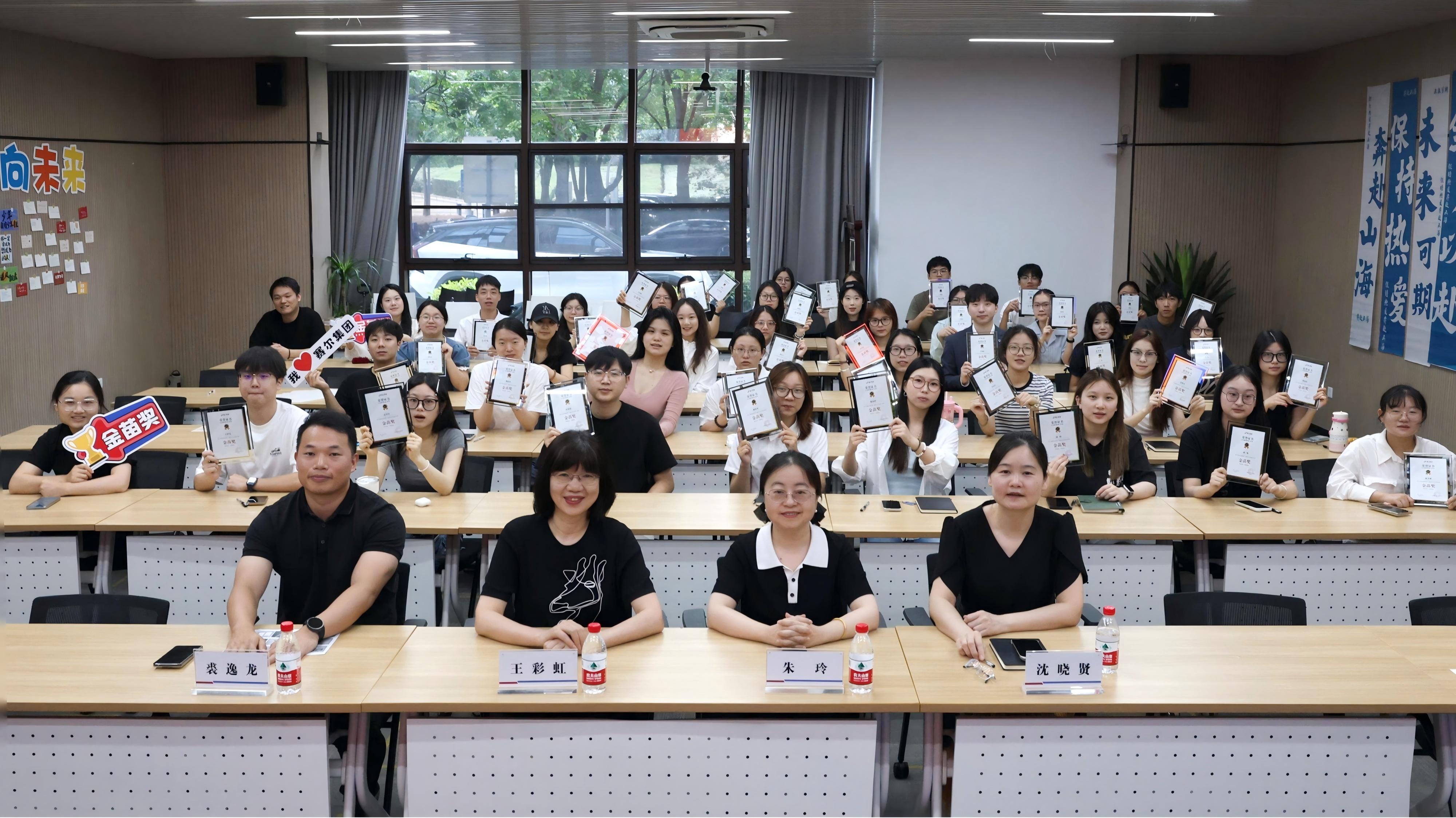 隨后,頒獎儀式莊重舉行。本年度共有57位優秀實習生榮獲“金苗獎”榮譽稱號,他們來自集團職能部門、業務公司以及生態圈公司。獲獎者依次登臺,接受這份象征著成長與榮耀的肯定。